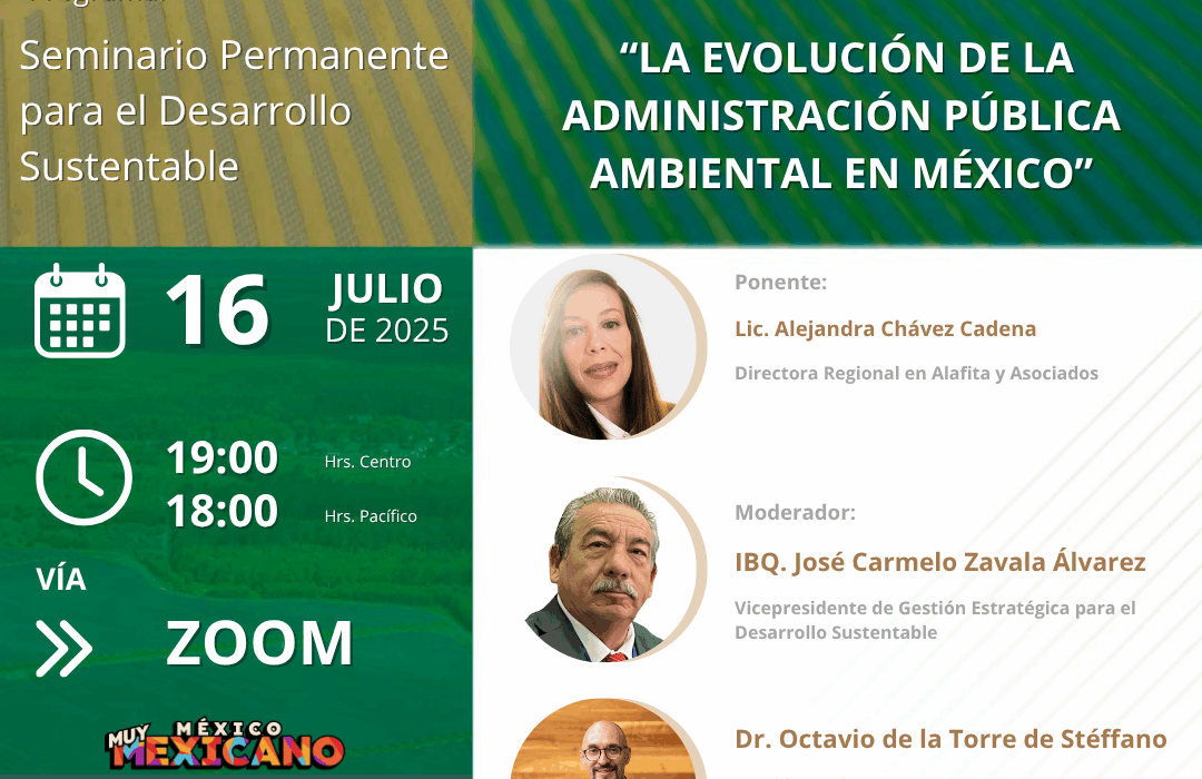 🌱 Seminario Permanente para el Desarrollo Sustentable La CONCANACO SERVYTUR y el Centro de Innovación y Gestión Ambiental México A.C. (CIGAMX) te invitan cordialmente a nuestra próxima sesión del Seminario Permanente para el Desarrollo Sustentable. 🗓 Fecha: Miércoles, […] [...]